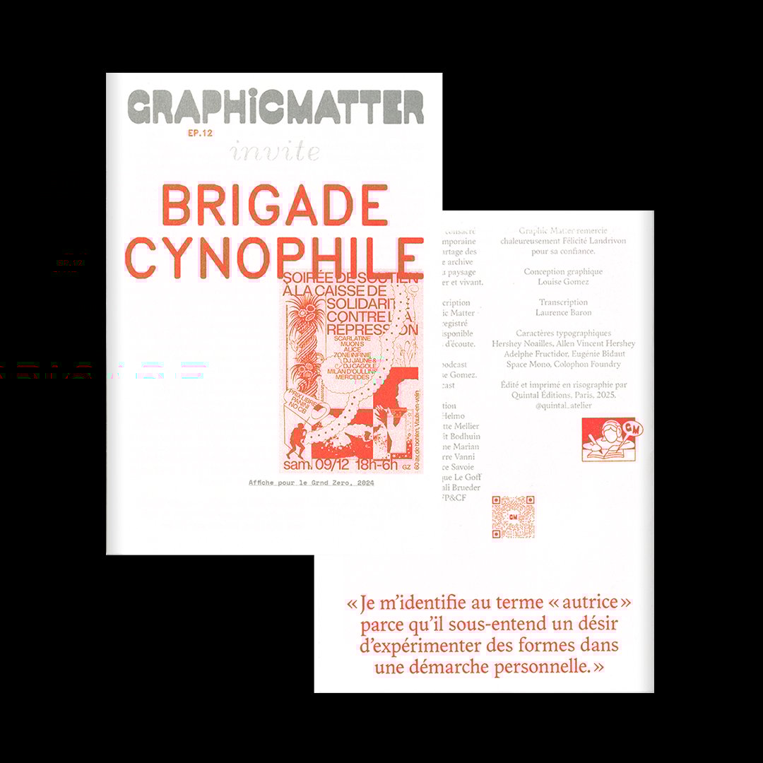 Dans ce numéro, EP.12, Graphic Matter s'entretient avec Félicité Landrivon (Brigade Cynophile), designer graphique autrice.